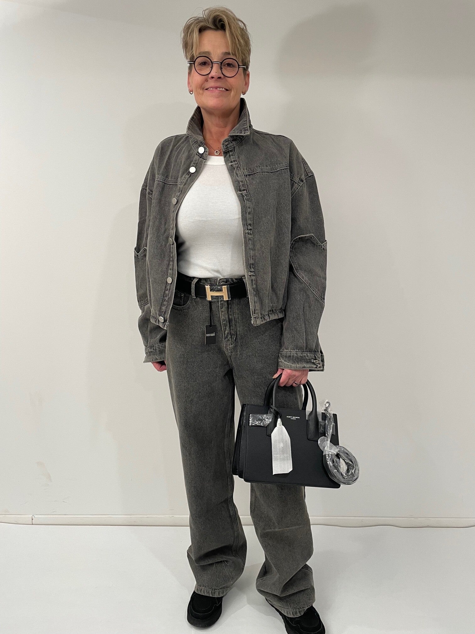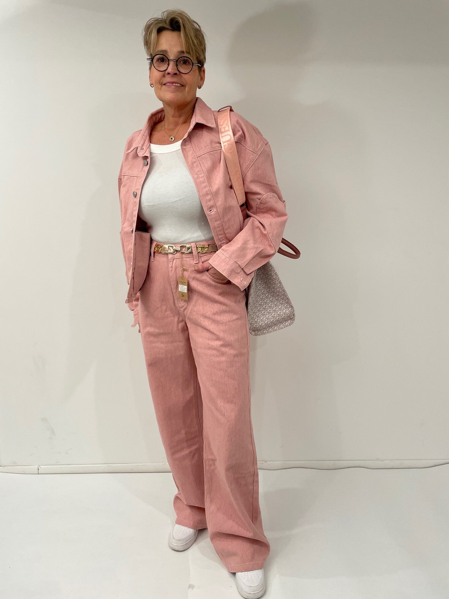gaaf spijkerpak in twee kleuren (tas kan ook verkocht worden)